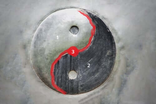 Zhong po chińsku oznacza centrum. Można też powiedzieć ‘neutralne’. Możecie także powiedzieć ‘Zhong Xin’. Xin to serce. Wtedy można to rozważyć jako ‘samą esencję’, coś bardzo głównego. Samo serce centrum wyznacza ścieżkę, Dao. Oznacza to, że
