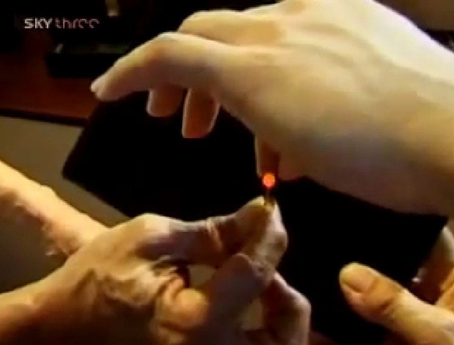 Przypadek: dym wydobywający się z dłoni w czasie emisji Qi